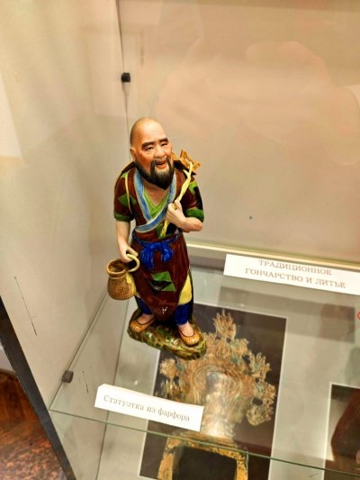Кроме завораживающих мастерством исполнения картин, на выставке «Страна драконов» представлены: традиционные китайские «узлы», фарфор, изделия из камня, шёлк, а также тибетские ритуальные маски и кинжал Пхурбу.